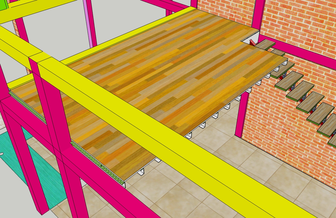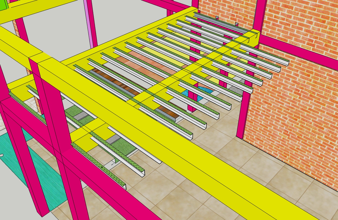 Diatas ruang utama terdapat loteng dengan ukuran panjang 390 cm dan lebarnya 225 cm. Menggunakan kaso dari besi chanal C dengan ukuran.